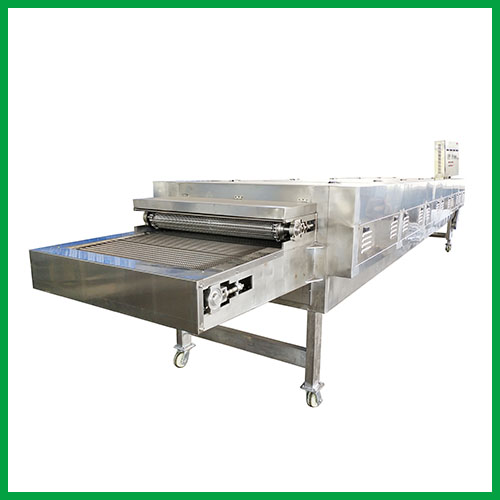 物料由傳動裝置拖動在烤箱內移動,烤箱內部熱量均勻分布,保持高品質烘焙效果,部分尾氣由專門排濕風機排出,廢氣由調節閥控制,網帶運行速度可根據需要的溫度自由調節,烘烤好的成品自動落入收料器中,操作簡單,省時省力,安全節能噪音小。